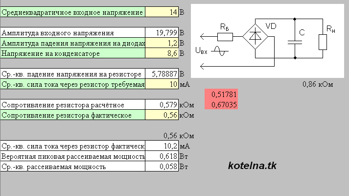 | Расчёт сопротивления балластного резистора для синусоидального напряжения и выпрямителя |
